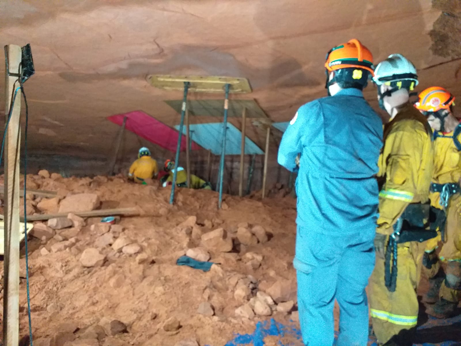 Diversas equipes participaram das atividades de resgate, como CBPMESP (Corpo de Bombeiros da Polícia Militar do Estado de SP), Polícia Militar, técnicos da CEPDEC (Coordenadoria Estadual de Proteção e Defesa Civil de SP) e um geólogo do IPT (Instituto de Pesquisas Tecnológicas), além de especialistas em resgate.